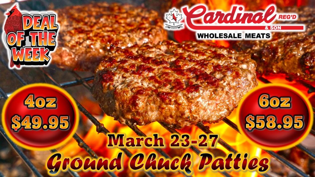 From March 23–27, Cardinal Wholesale Meats is featuring our IN-HOUSE Ground Chuck Patties, perfectly portioned, beautifully marbled, and ready to deliver that mouth‑watering, backyard‑BBQ flavor you love.